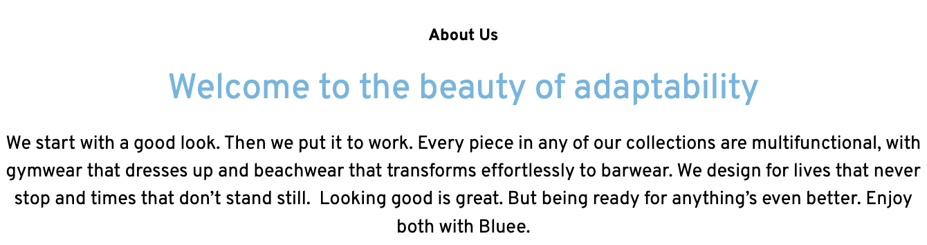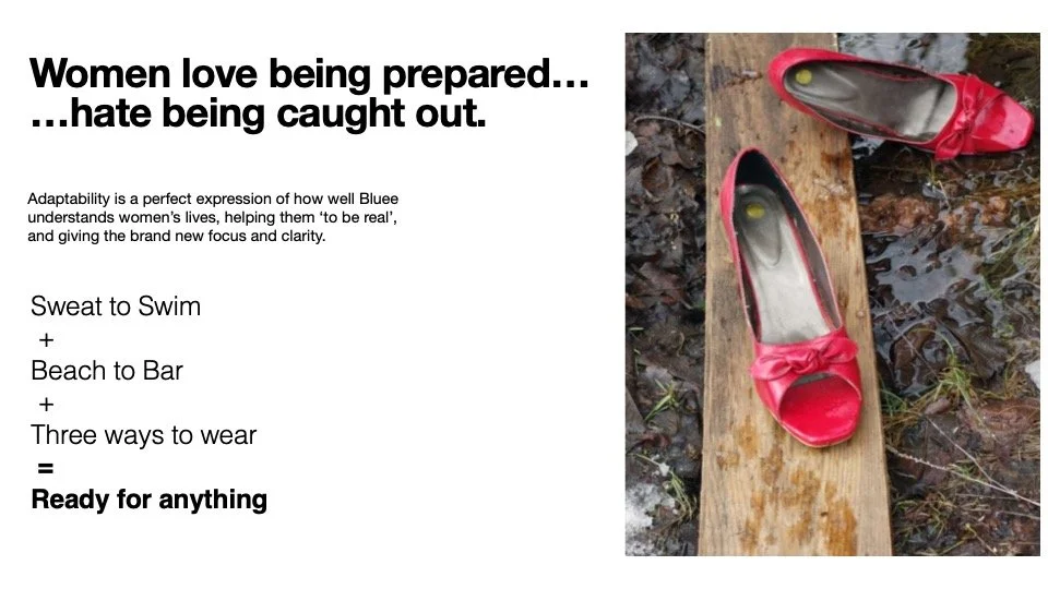 Meggan Grubb is a popular British lifestyle influencer, with a successful niche blending physical and mental wellbeing. I helped Meggan to launch her own swim and leisurewear brand, defining her values, audience personas and vision, translating everything she stands for into a new and uniquely distinctive new brand, peisurewear and website launch: “Bluee”. Strategically, the central theme driving all of the work was ‘adapability’.