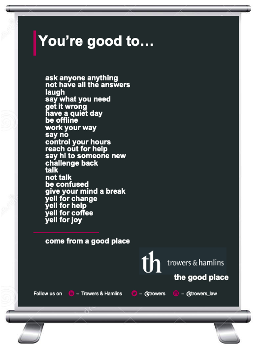 I helped the 250 year-old, international law firm, Trowers & Hamlins to translate their employee research findings into an employer brand, with a set of coherent corporate values, employee value proposition, vision and creative expressions.