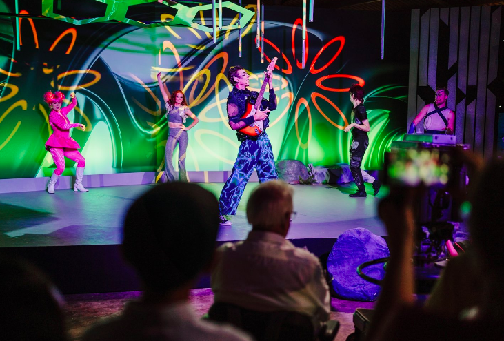 INside this lifelike 'on-set' atmosphere, visitors became extras, mingling with actors as participants of a show within a show, as they joined scenes being acted out before a retro camera, lighting and sound crew. Disco dance scenes, inflatable monsters, and a musical cast of colourful aliens and astronauts captivated the audience, achieving an engagement rate of 95%.